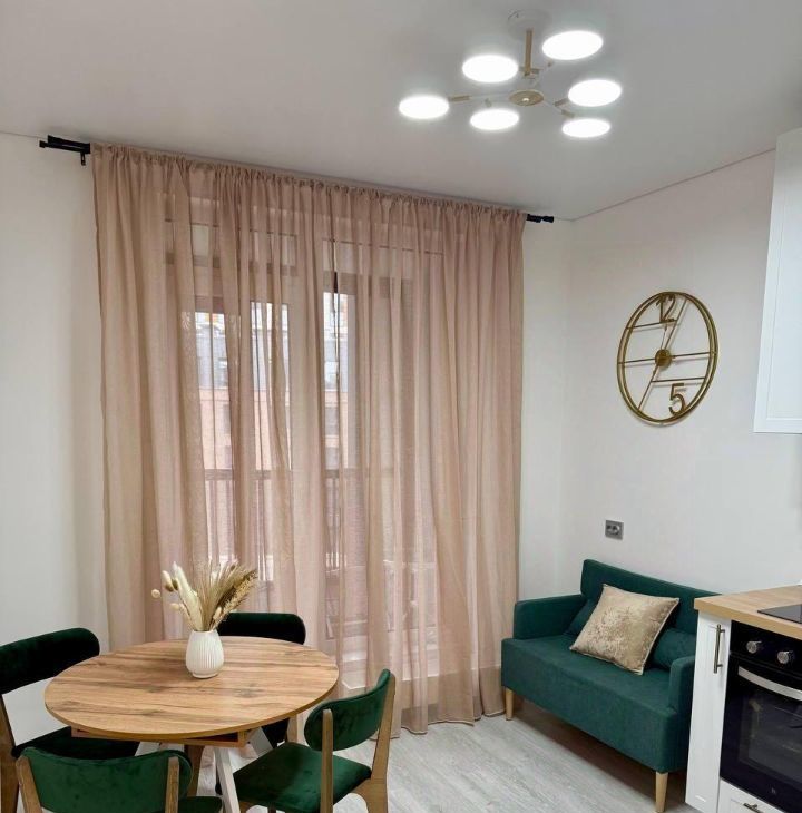 Квартира полностью меблирована и оборудована современной техникой, что позволит вам сразу же почувствовать себя как дома. Просторная гостиная с открытой кухней создаёт атмосферу уюта и простора, а стильный интерьер добавляет элегантности.