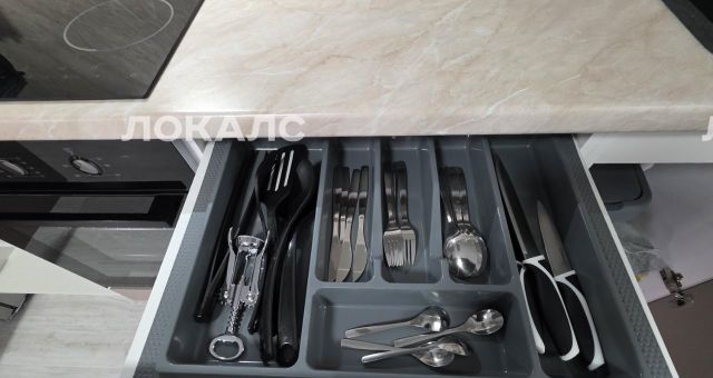 Сдается с пакетом арендатора: современная кухонная зона, полный комплект мебели и бытовой техники.