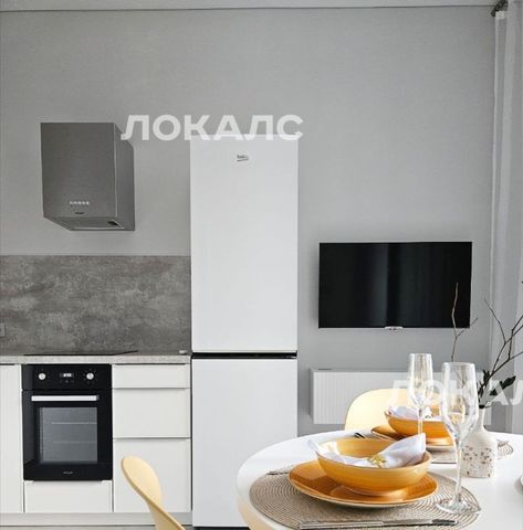 Для удобства установлены посудомоечная машина, духовой шкаф, индукционная варочная панель, вместительный холодильник, вытяжка, и телевизор, дизайнерский круглый стол с удобными стульями.