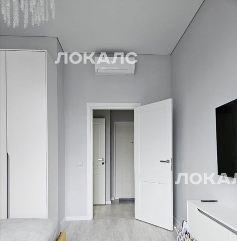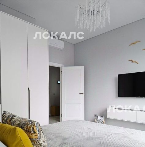 В спальне разместились: невероятно удобная кровать с ортопедическим матрасом, большой стильный шкаф, стеллаж, тумбы, большой телевизор, шторы блэк аут, а так же тихая сплит-система.