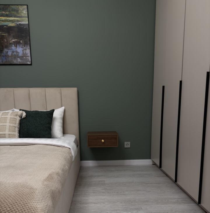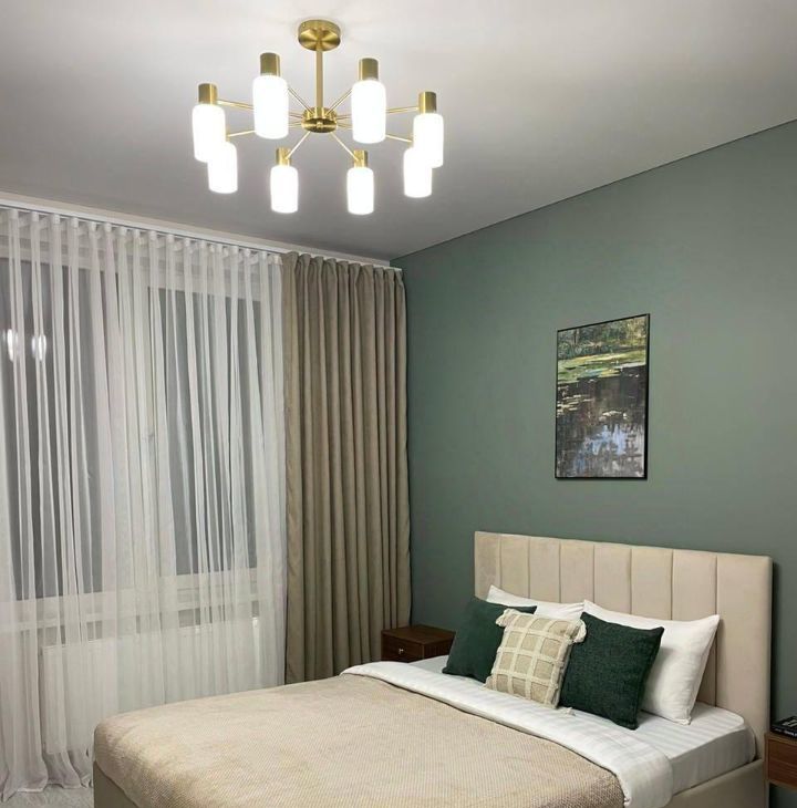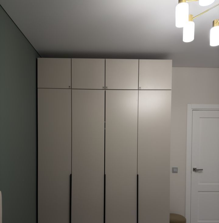 Квартира тихая — окна выходят во двор. Спальня с большим шкафом, достаточно мест хранения без перегруженности пространства.