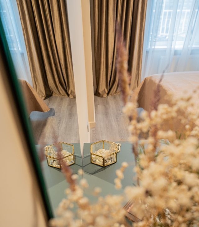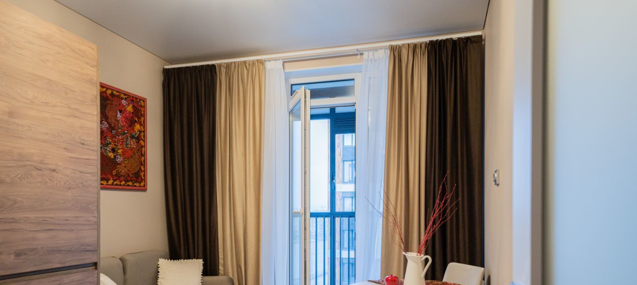 В квартире есть всё необходимое для комфортного проживания: современная мебель как в комнате, так и на кухне, а также полный набор техники. Здесь вы найдёте кондиционер, холодильник, индукционную плиту, микроволновую печь, стиральную машину и посудомоечную машину, пылесос, утюг, гладильную доску.