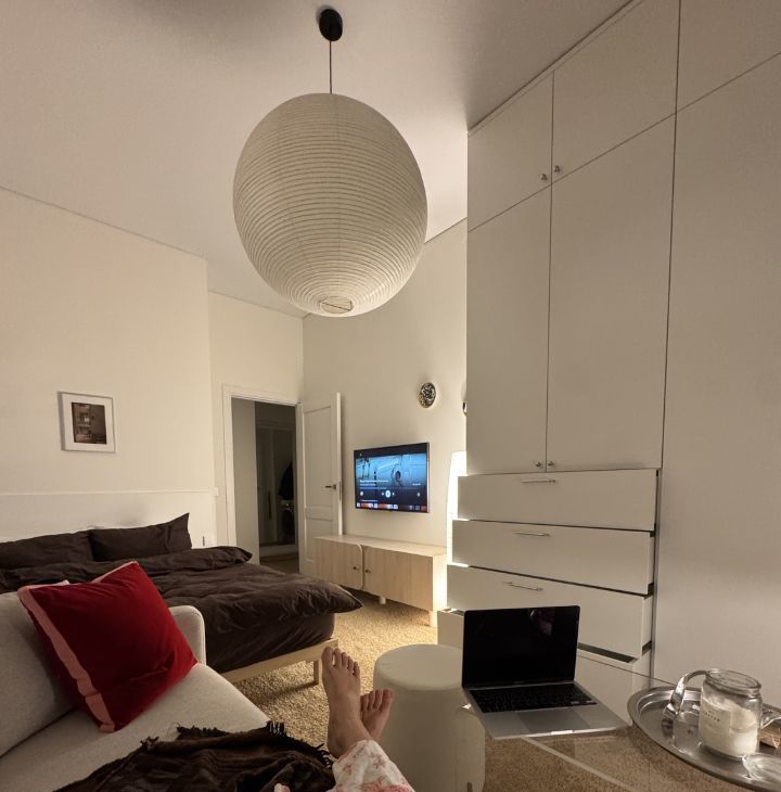 Вечером вы наслаждаетесь простором и светом 3-метровых потолков, а потом засыпаете на ортопедическом матрасе Ascona. А если приедут гости — для них уже готов удобный раскладной диван.