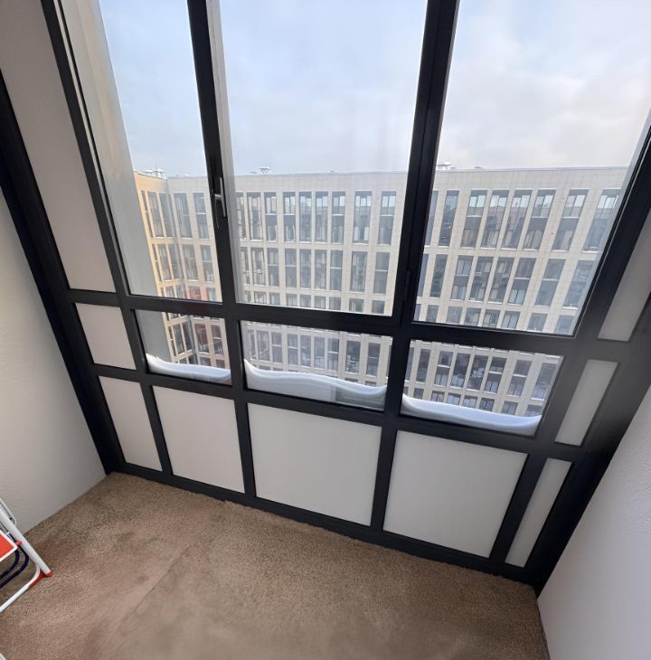 Простор и свет: высокие потолки 3 м, много окон, продуманные зоны хранения.