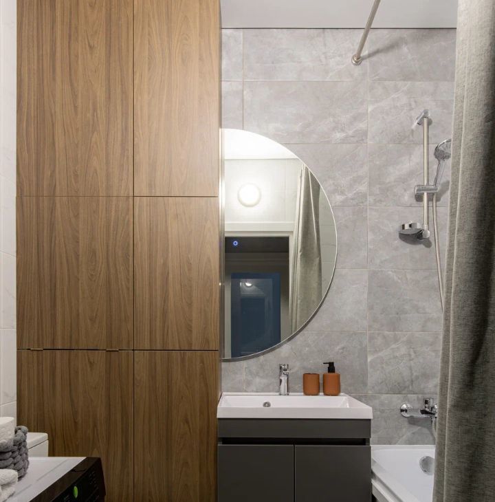 Продуманное пространство однокомнатной квартиры. Большая кухня-гостиная с рабочей зоной и диван со спальным местом. Много вариантов освещения для уюта. Сдается на длительный срок. Дом бизнес класса стихии двором.