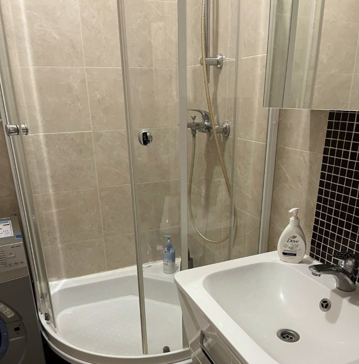 В ванной душевая кабина, стиральная машина. Вся техника новая.