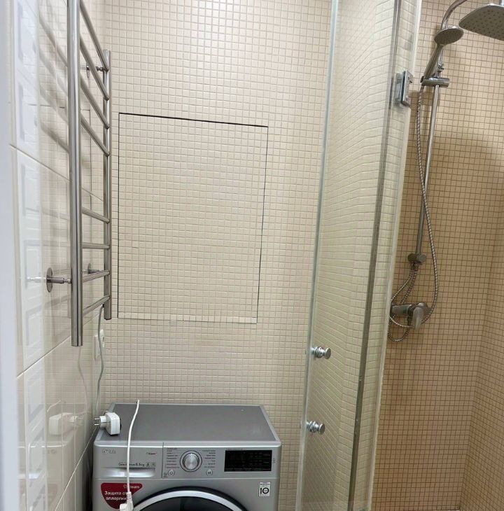 В квартире все готово для комфортного проживания, имеется вся кухонная техника с посудомоечной машиной, стиральная машина, робот-пылесос, ТВ с саундбаром, кондиционер, просторная гардеробная. Раскладной диван имеет ортопедический матрац.