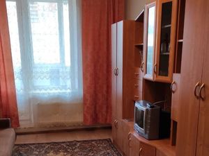 - изолированная просторная комната с вместительным 3-х дверным шкафом, стенкой под ТВ и 2-х спальным диваном и телевизором;
