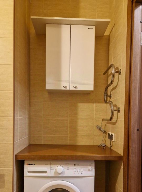 Квартира после качественного ремонта и полностью готова для проживания- есть вся необходимая современная мебель и бытовая техника: холодильник, СВЧ, пылесос, эл.чайник, а также посуда, спальные принадлежности, гладильная доска, утюг и сушилка для белья. Сан/узел совмещенный в современном кафеле, в нише установлена стиральная машина, качественная сантехника. Всё в отличном состоянии.