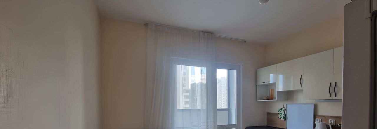 Общая площадь - 37,5 кв.м., комната правильной прямоугольной формы 19 кв.м., кухня 10 кв.м., застекленный балкон. 11-й этаж 21-этажного нового дома.