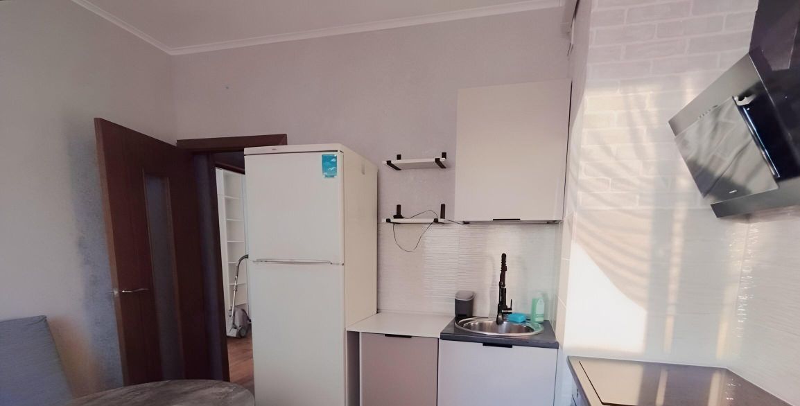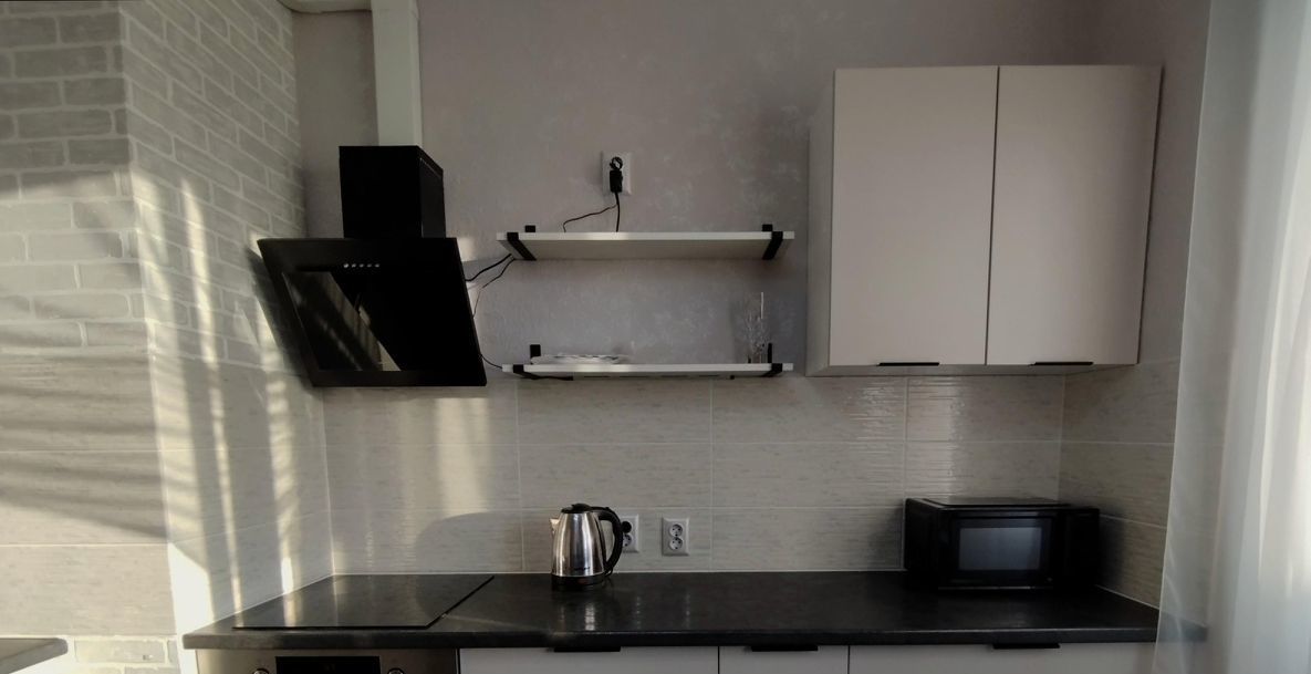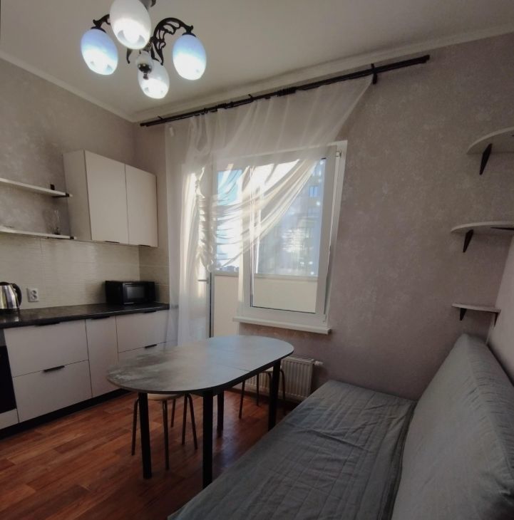 В квартире выполнен качественный ремонт, обстановка современная. В комнате и на кухне есть вся необходимая мебель. Для вашего удобства установлены холодильник, посудомоечная машина, микроволновка и электрочайник. Санузел совмещённый, с просторной ванной и стиральной машиной. Также имеется лоджия, где можно отдохнуть после трудового дня.