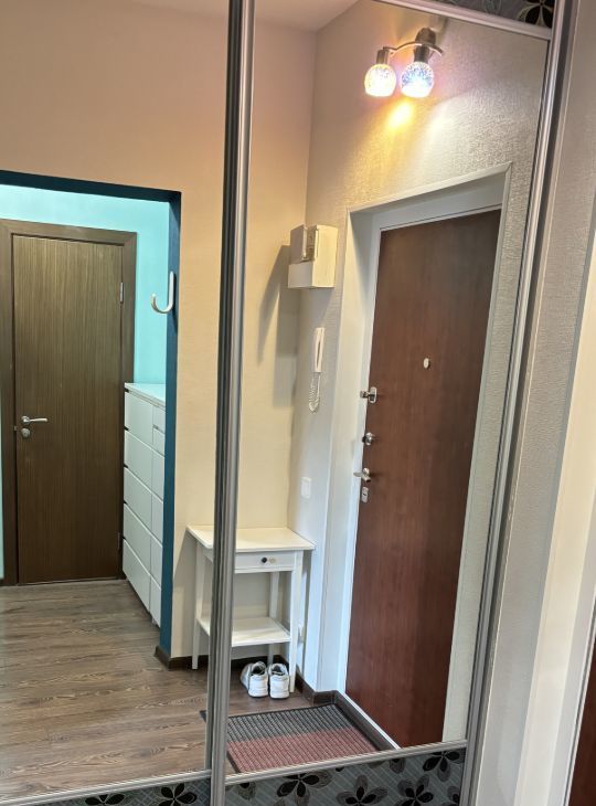 В прихожей за зеркальными дверями-купе встроенная гардеробная.