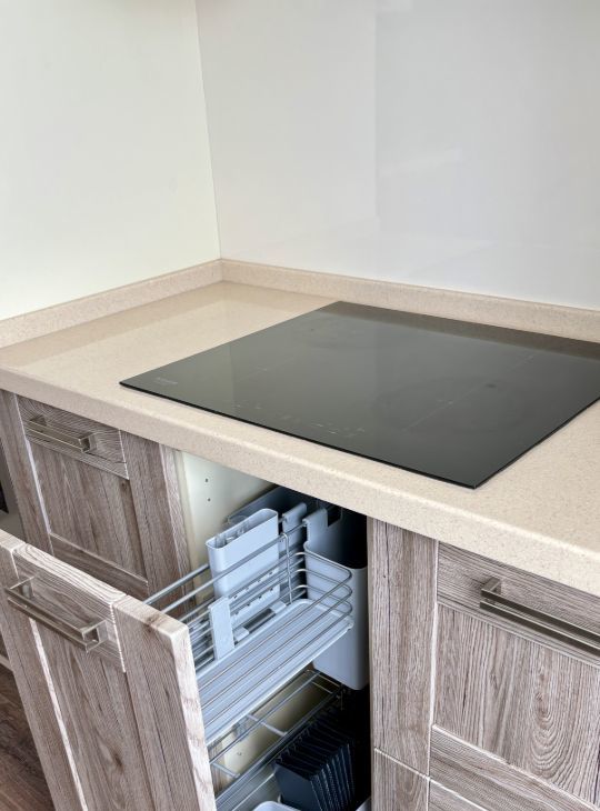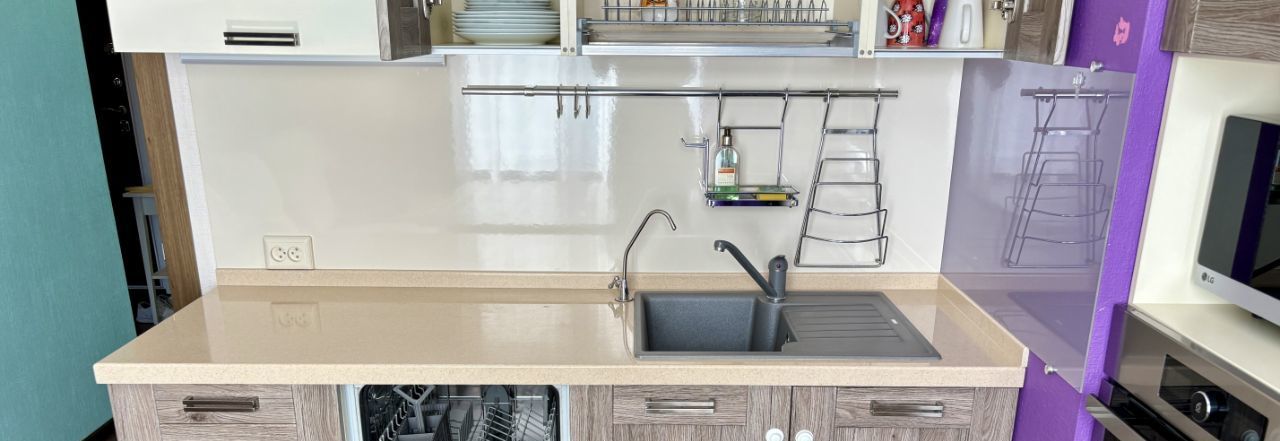 - Встроенная бытовая техника европейских брендов: стиральная машина, посудомоечная машина, духовой шкаф, варочная панель, встроенный холодильник, микроволновка и, конечно, чайник
