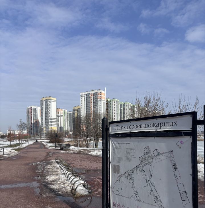 От метро "Проспект Славы" 7 минут прогулочным шагом по территории Парка "Героев-Пожарных".