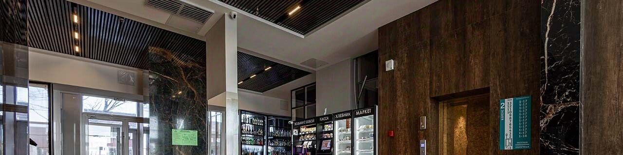 - дизaйнeрскиe холлы, пpaчeчнaя, пункт выдaчи OZON, WВ, кафе, бaр, ресторан Коржов, продуктовый магазин, фитнес