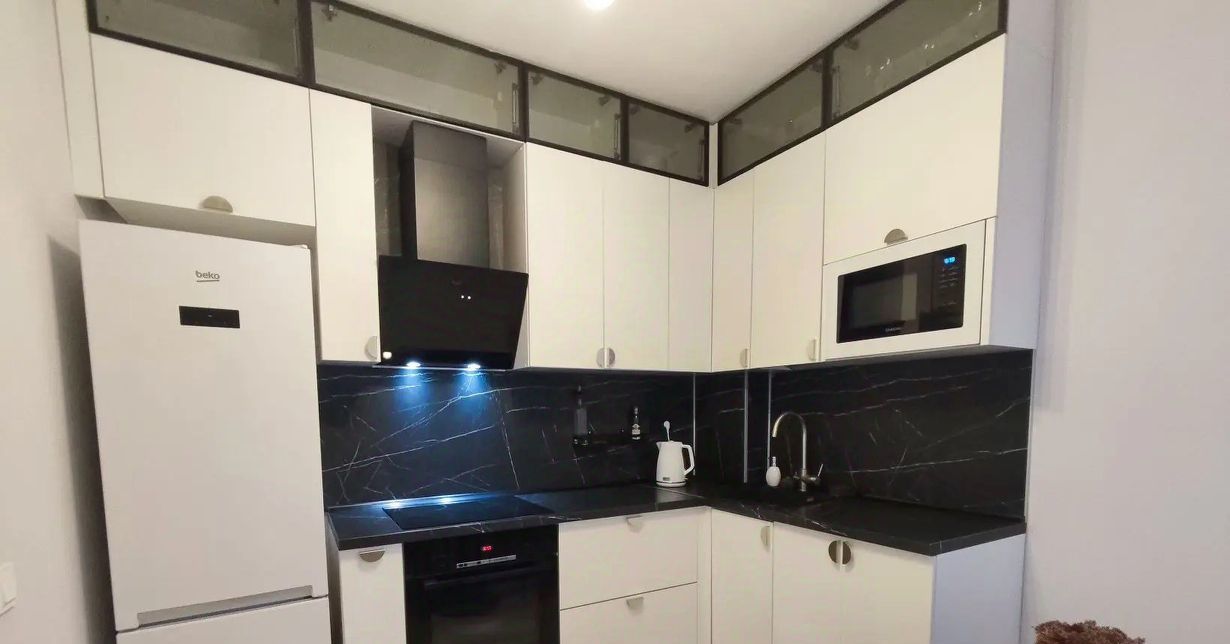 Удобный раскладной диван с зонами для хранения вещей. В коридоре огромный шкаф, много мест для хранения. Отличная современная кухня с духовкой, стиральной машиной, вытяжкой и холодильником. Есть микроволновка, чайник. Посуда в наличии. Вертикальный мощный пылесос. Курить в квартире нельзя.