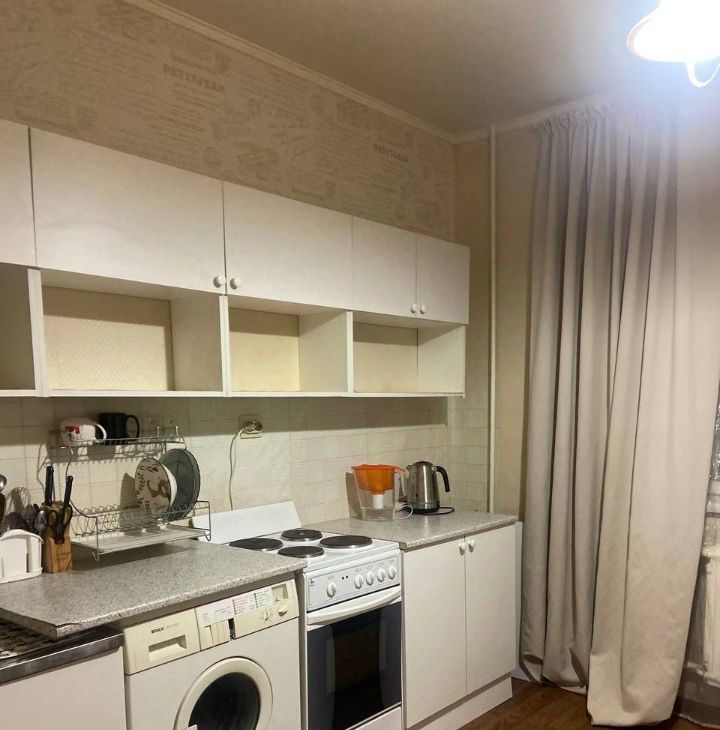 В квартире есть всё необходимое для комфортного проживания: косметический ремонт, мебель на кухне и в комнате. Из техники: холодильник, телевизор и стиральная машина. Окна выходят на улицу, обеспечивая хорошее естественное освещение.