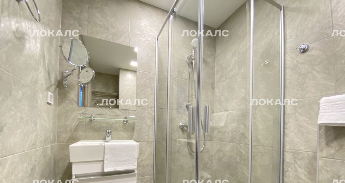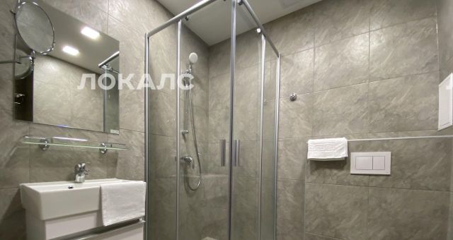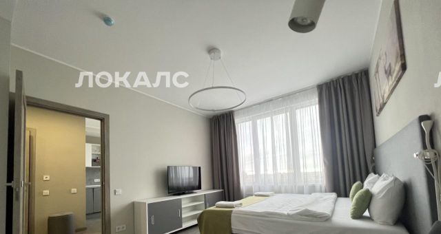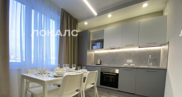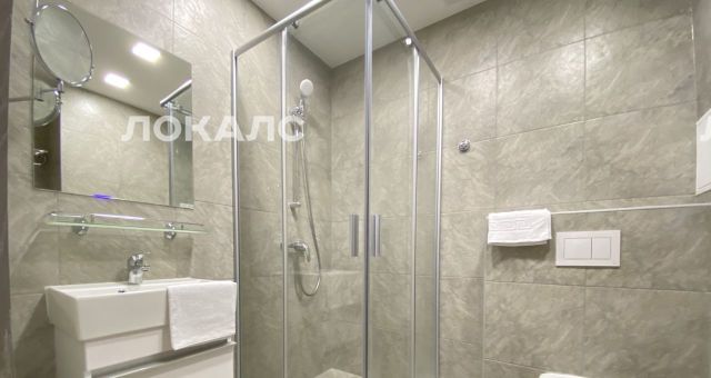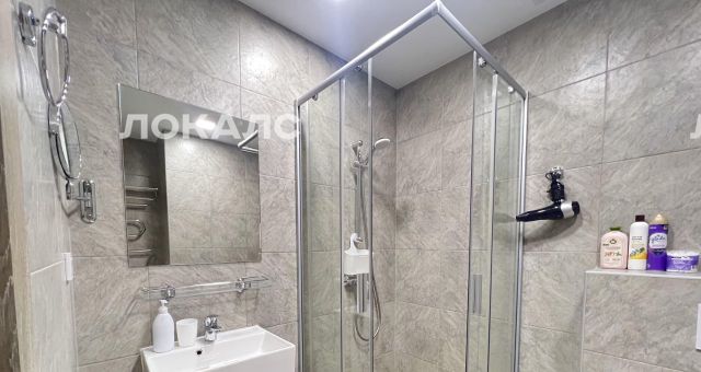 В квартире есть всё необходимое для комфортного проживания: современная мебель в комнате и кухня площадью 10 кв. м. Из техники — холодильник, телевизор и стиральная машина. Санузел совмещённый, оборудован душевой кабиной.