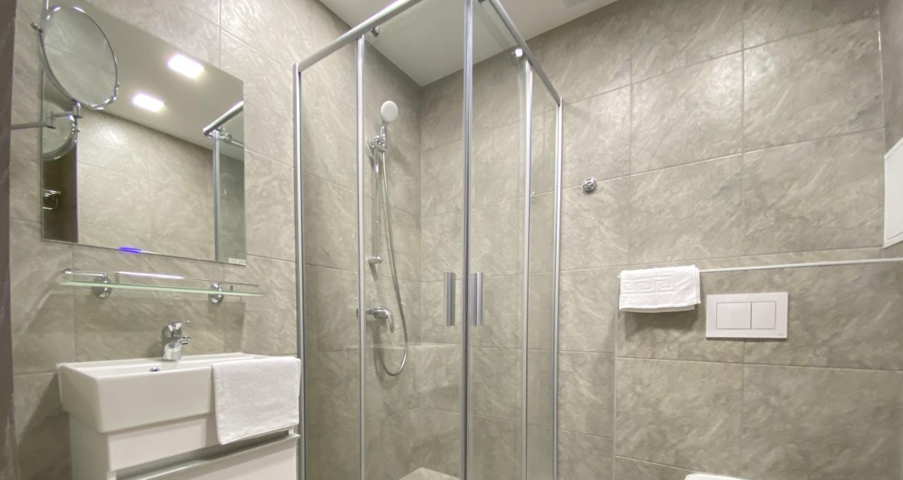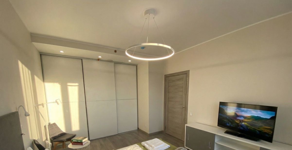 Квартира отличается дизайнерским ремонтом, что придает ей современный и стильный облик. Здесь есть все необходимое для комфортного проживания: холодильник, телевизор и стиральная машина. В комнате и на кухне имеется мебель, поэтому можно сразу заехать и начать жить. Санузел совмещенный, оборудован душевой кабиной, что создает дополнительное удобство.
