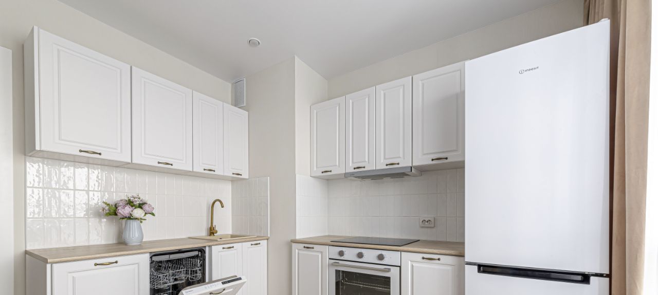 - Новым владельцам остается: Кухонный гарнитур со встроенной техникой, варочная панель, вытяжка, духовой шкаф, посудомоечная машина.