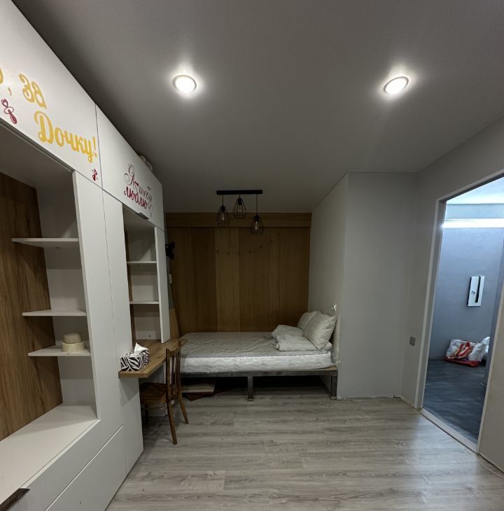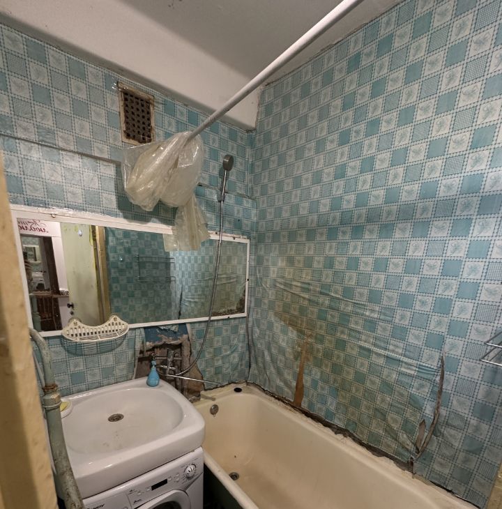 Можно было быстренько обклеить всё не красивое дешевыми самоклеющимися панелями и загнуть аренду. Потом удивляться, когда все отвалится. Было принято решение сдавать в таком виде, за приемлемые деньги. Арендатору будет разрешено переделать под себя, как ему понравится.