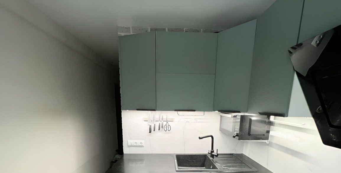 - На кухне все фасады с доводчиками для вашего комфорта , сушилка с подъемным механизмом , керамогранитный фартук , 3 зоны освещения - общий, подсветка рабочей зоны и подсветка стола, на столе есть розетки