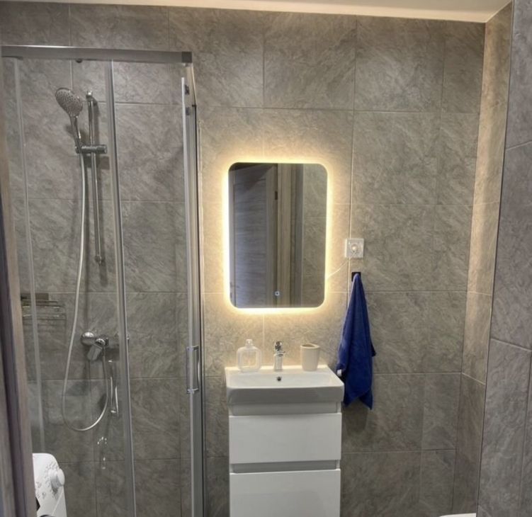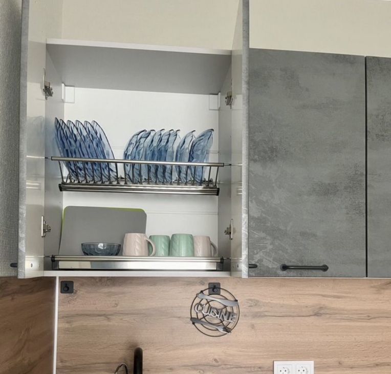 - есть вся необходимая техника, а именно холодильник, микроволновая печь, стиральная машина, варочный панель, духовой шкаф, телевизор со смарт Tv, утюг, фен.