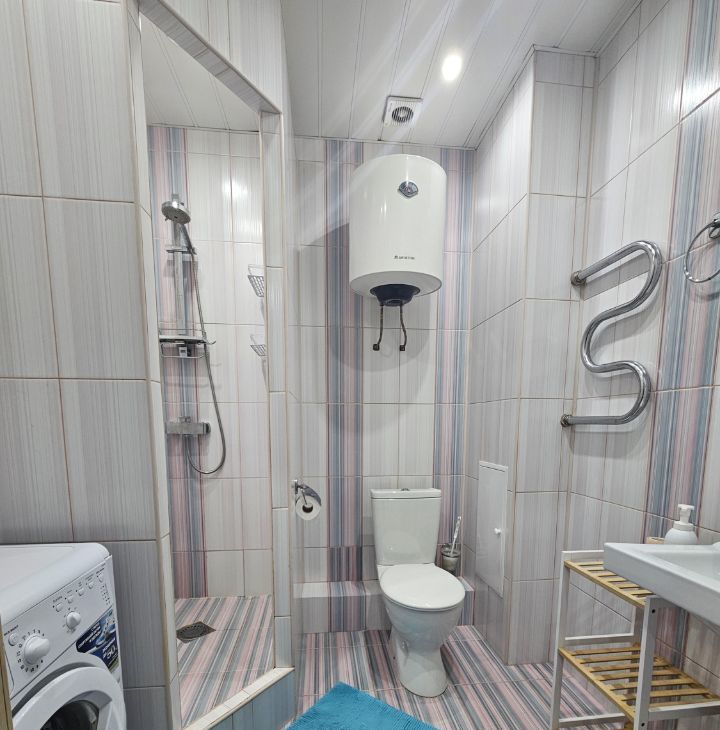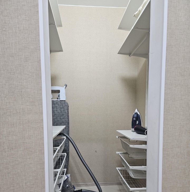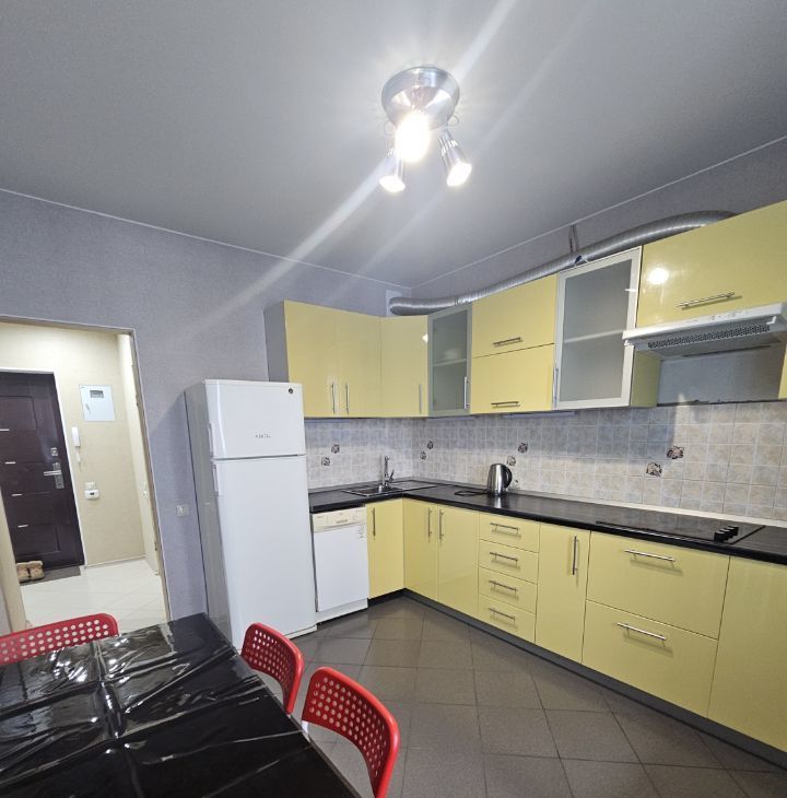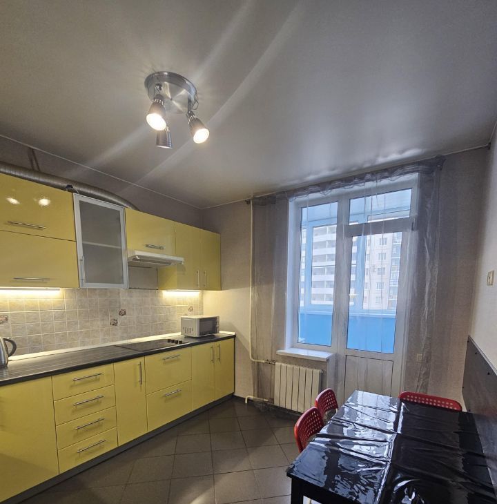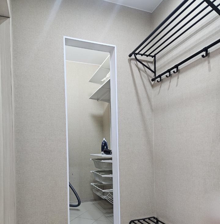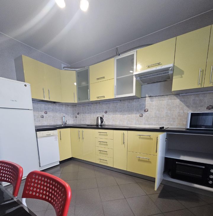 Квартира полностью укомплектована всем необходимым для проживания: встроенная кухня, посудомоечная машина, варочная поверхность, духовой шкаф, вытяжка, микроволновка, электрический чайник, стол и стулья, в комнате: кровать 180x200, комод, компьютерный стол, в с/узле - стиральная машина, в прихожей вешалка и полка, оборудованная гардеробная, есть сушилка, гладильная доска, утюг и пылесос.