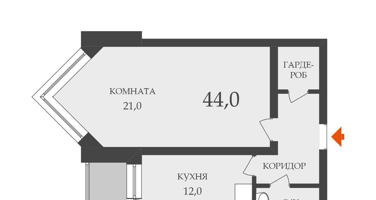 1-к кв. Санкт-Петербург Выборгское ш., 15 (44.0 м²)