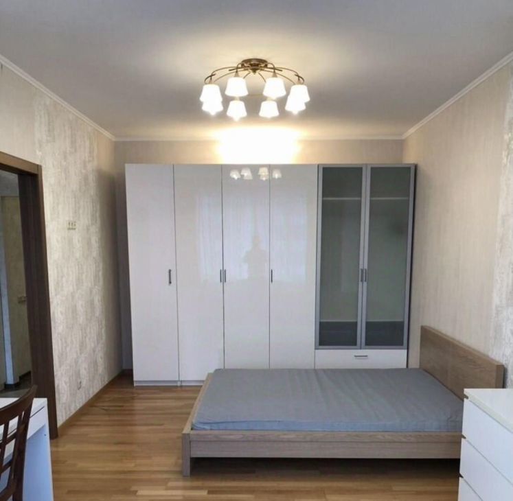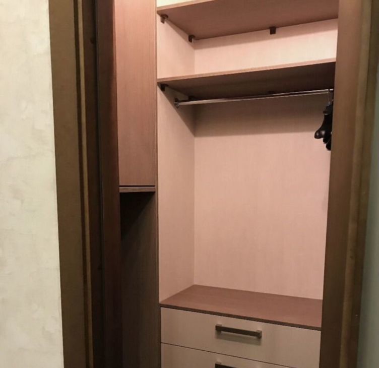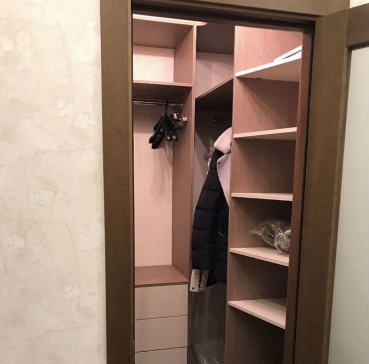 В прихожей встроенная гардеробная, видео домофон . В комнате шкаф-гардеробная, большой комод и письменной стол, двуспальная кровать 160x200.