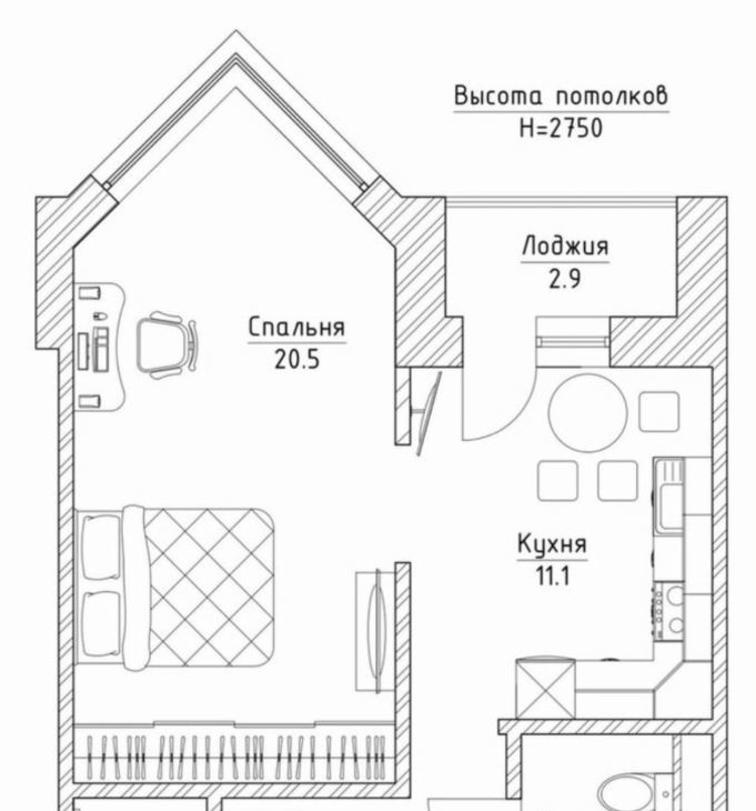 Кухня 11 кв. м. Высота потолков 2,75 мера.