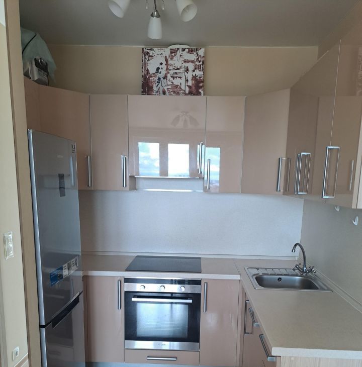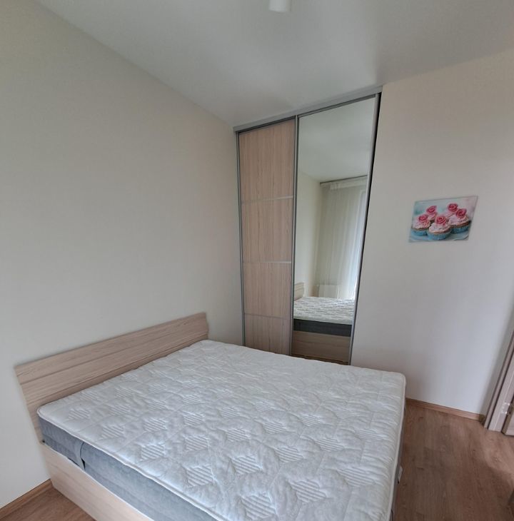 В квартире есть все необходимое для проживание кровать, холодильник, стиральная машинка, кухонный гарнитур, шкафы для хранения, телевизор.