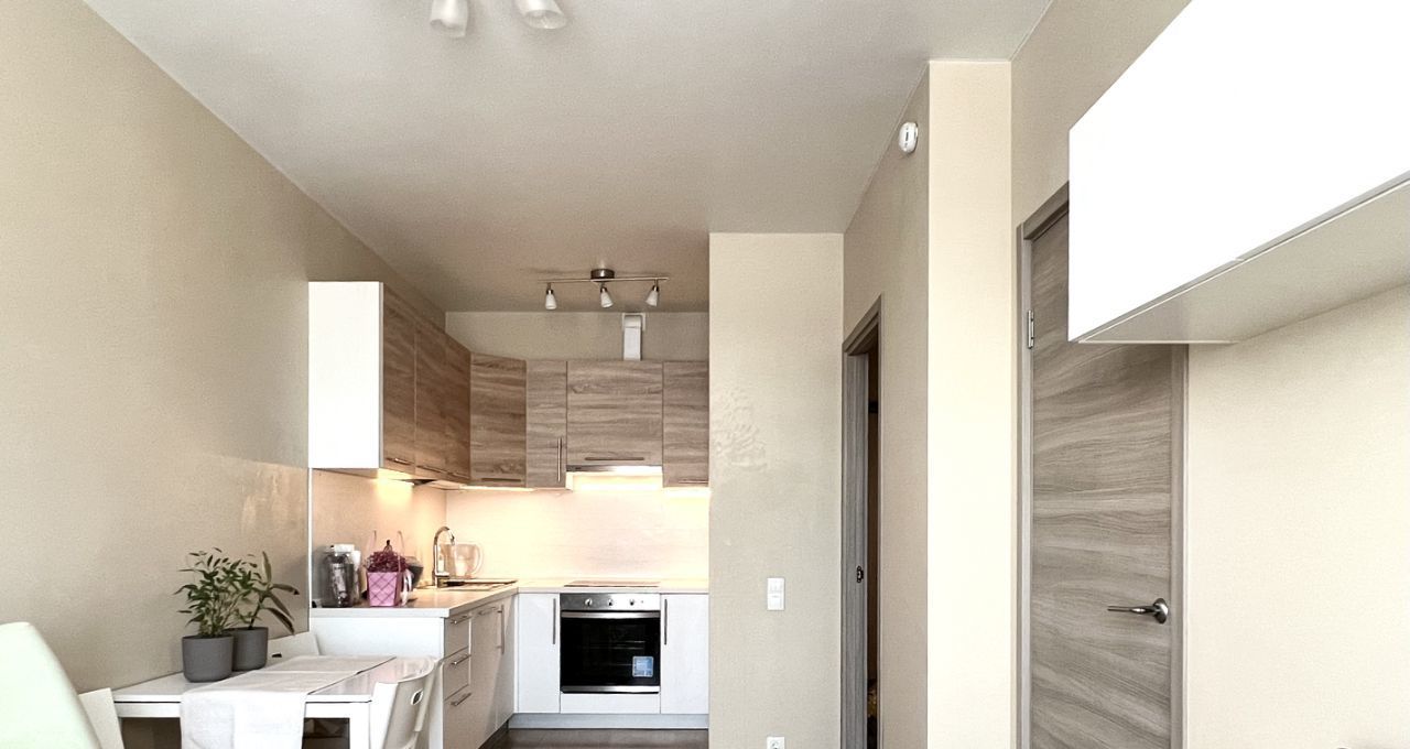 Кухня полностью укомплектована: кухонный гарнитур, холодильник, варочная панель, духовой шкаф, вытяжка, посудомоечная машина, электрочайник, обеденной стол со стульями. Гостиная зона оснащена раздвижным диваном и телевизором.