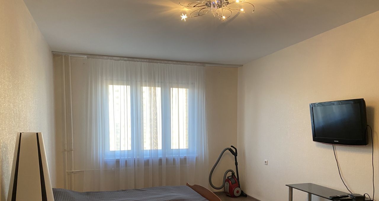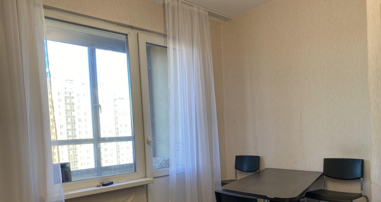 Сдаётся однокомнатная квартира в современном доме 2015 года постройки. Общая площадь — 38 кв. м, жилая — 20 кв. м, кухня — 8 кв. м. Квартира расположена на 13 этаже 25-этажного панельного дома, окна выходят на улицу. Высота потолков составляет 2.8 метра, что создаёт ощущение простора.