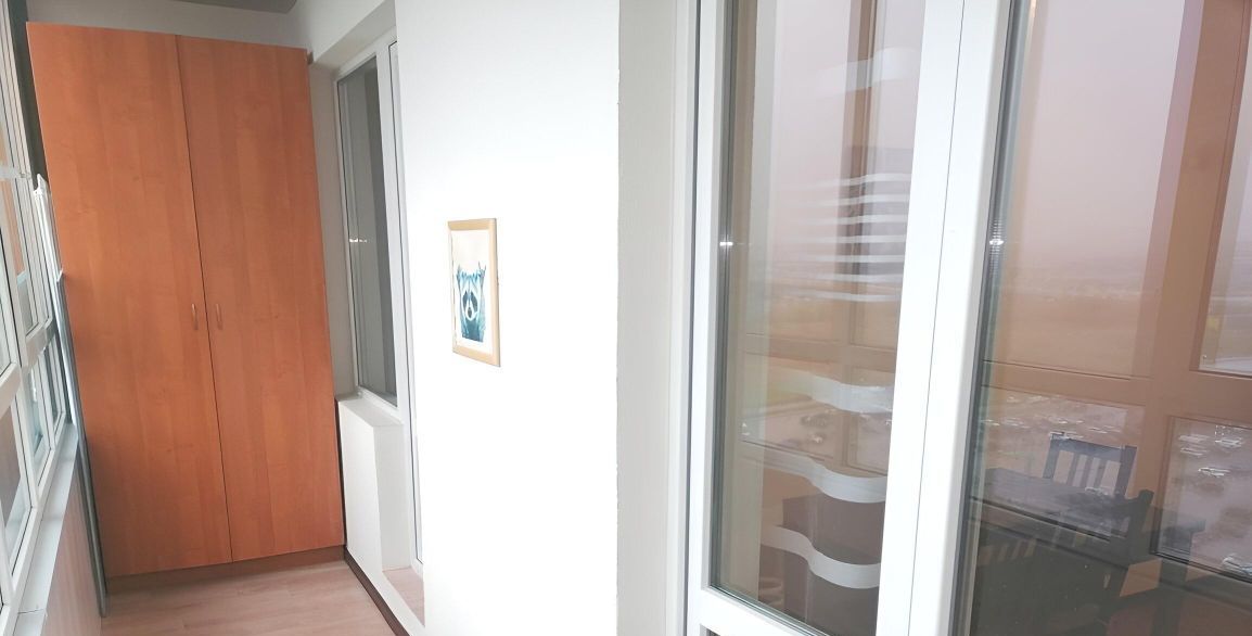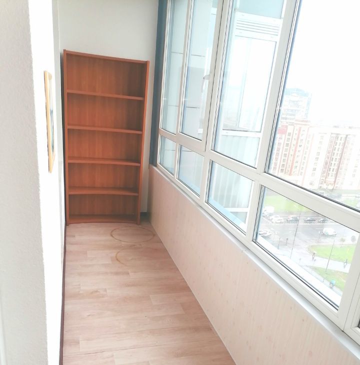 Огромная утепленная лоджия с теплым остеклением и местами хранения.