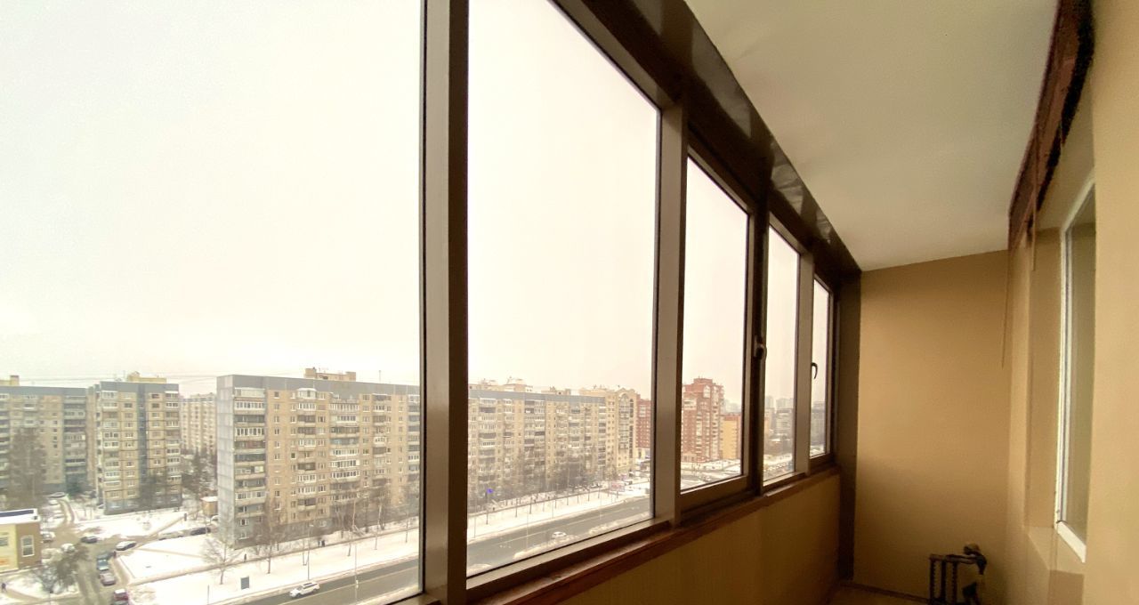 — просторная застекленная лоджия, окна выходят на Яхтенную улицу, юго-западная сторона