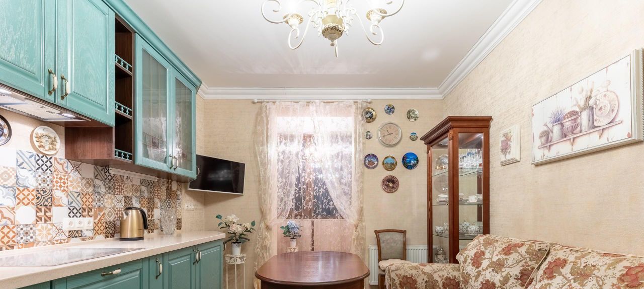• Гостиная и кухня объединяют современный функционал и уютную романтику: флористическая мягкая мебель, светлые оттенки, фактурные детали и полностью укомплектованная современная бытовая техника создают комфортное пространство как для отдыха, так и для приготовления пищи.