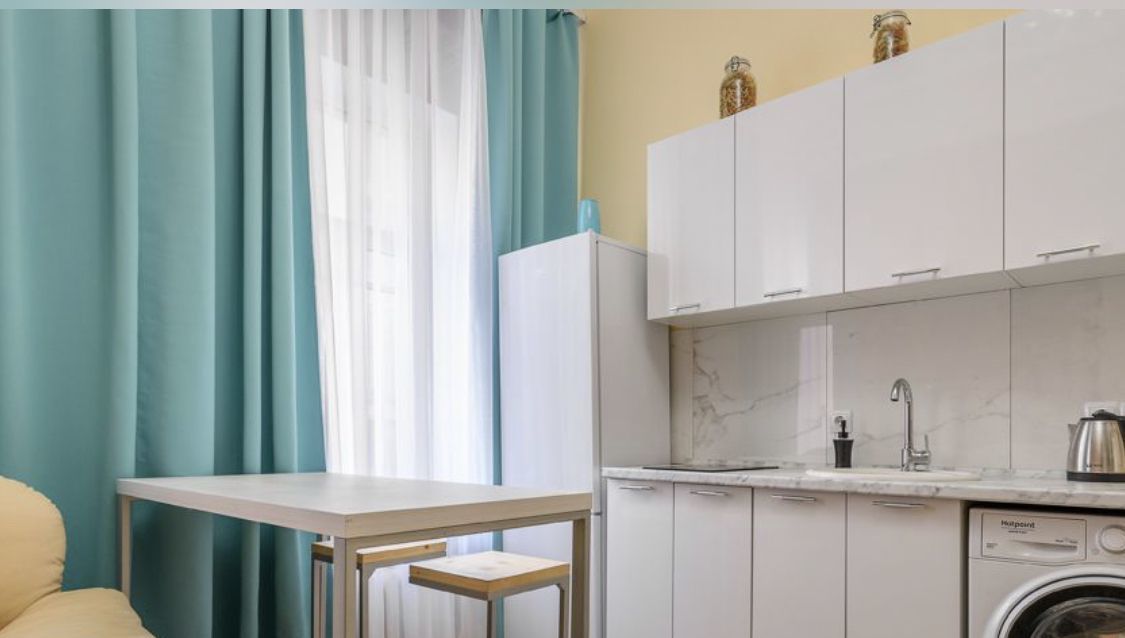 Квартира с дизайнерским ремонтом, продуманным до мелочей. Просторная комната и уютная кухня оснащены всей необходимой мебелью. В наличии современная техника: холодильник, телевизор и стиральная машина. Совмещённый санузел оборудован стильной душевой кабиной.