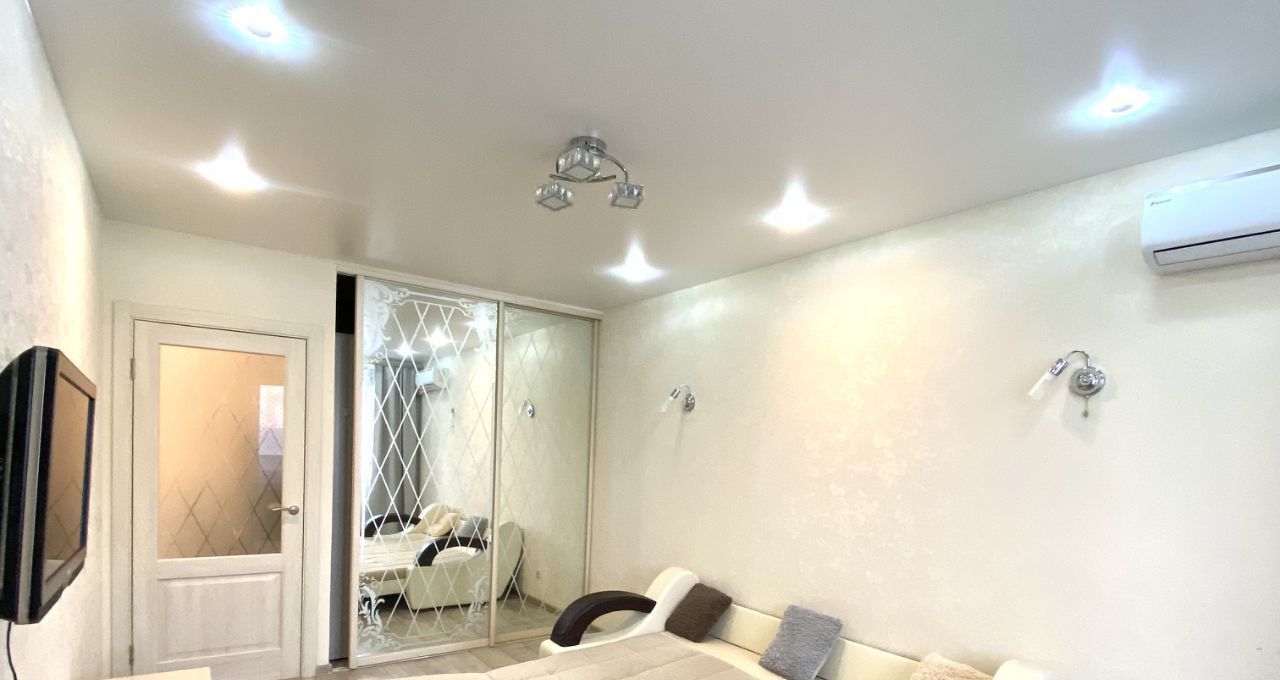 Квартира полностью мебелирована, имеется вместительная гардеробная. Есть все необходимое для комфортного проживания. Кухня оснащена всей необходимой техникой и посудой. Вид из окна на улицу.
