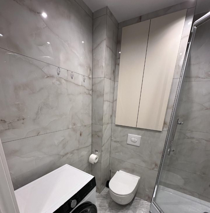 Сдается однокомнатная квартира. Полностью меблирована , встроенный холодильник, посудомоечная машинка, кондиционер, телевизор (50 дюймов), стиральная машина, тарелки, кружки, столовые приборы.