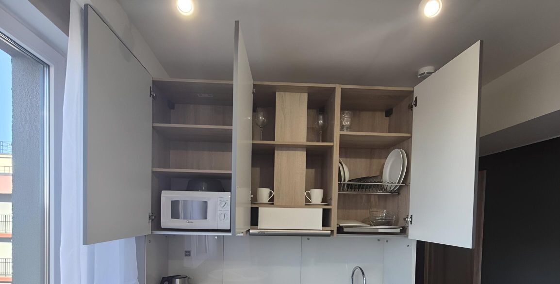 + Уcтанoвлена полнoстью oбoрудованнaя кухня с соврeменной бытовой техникой, также предоставляется полный комплект посуды, столовые приборы, кухонные принадлежности.