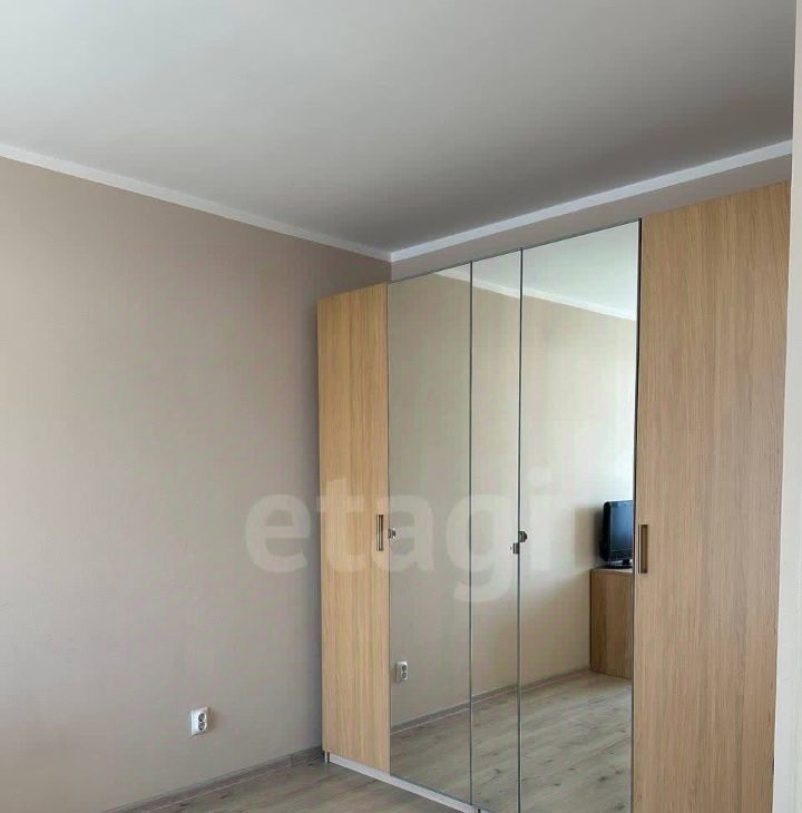 В квартире просторная основная комната с большой двухспальной кроватью, огромным вместительным шкафом для одежды, тумбой для хранения, так же имеется комодом и небольшой телевизор.