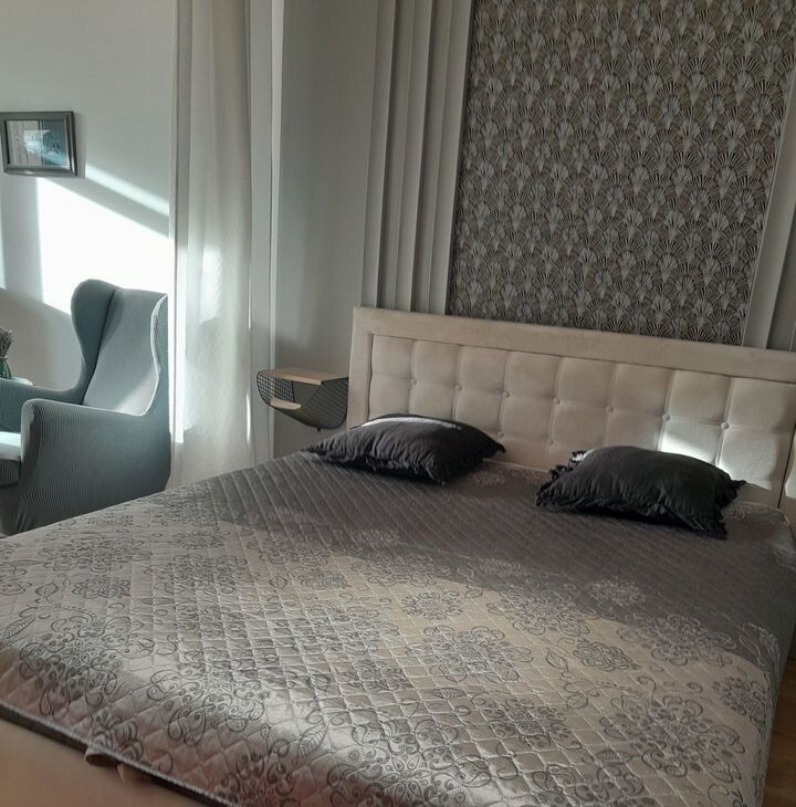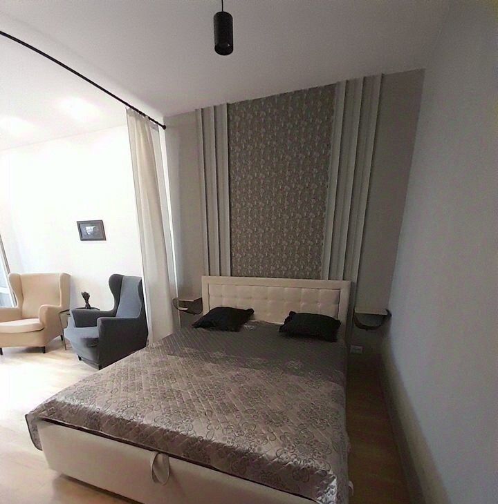 В квартире есть все необходимое для жизни современного человека — интерьер, полноценная ванная, большая кухня, техника, большой (43") телевизор с функцией Smаrt ТV, очень удобная большая кровать, большой двуспальный диван-кровать, и все это остается в квартире.