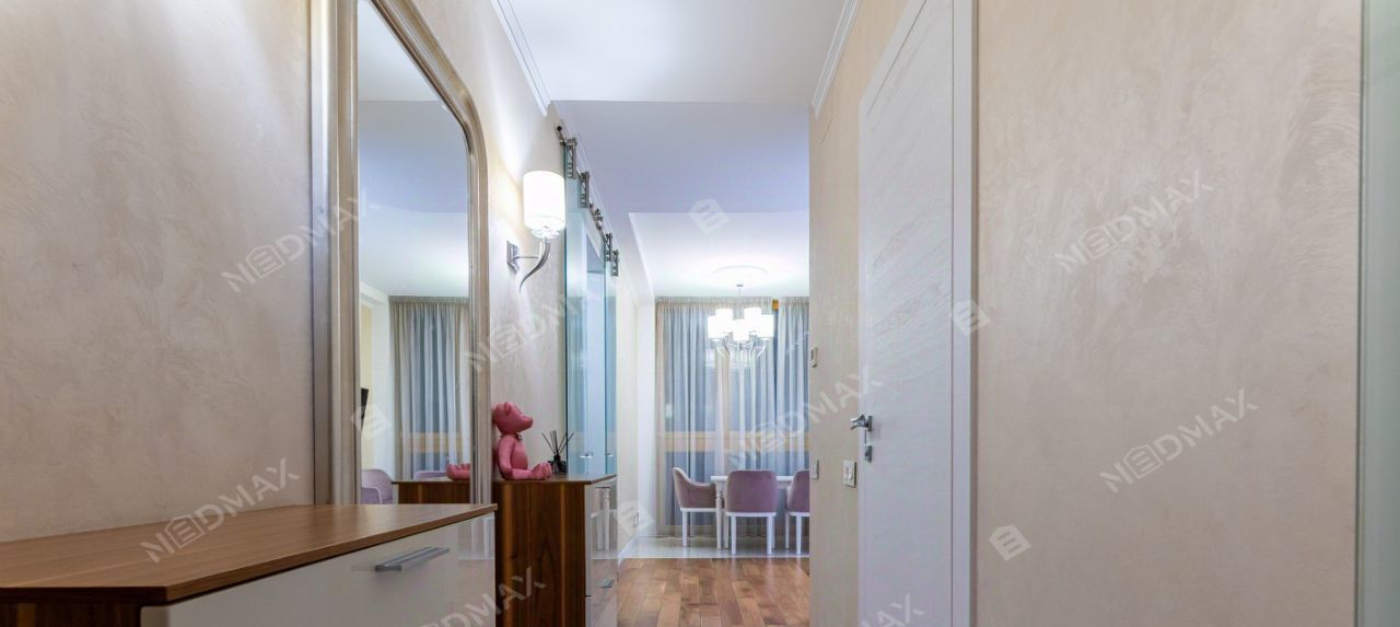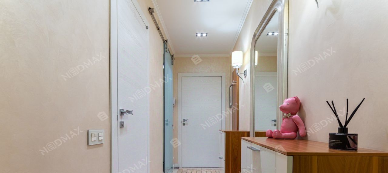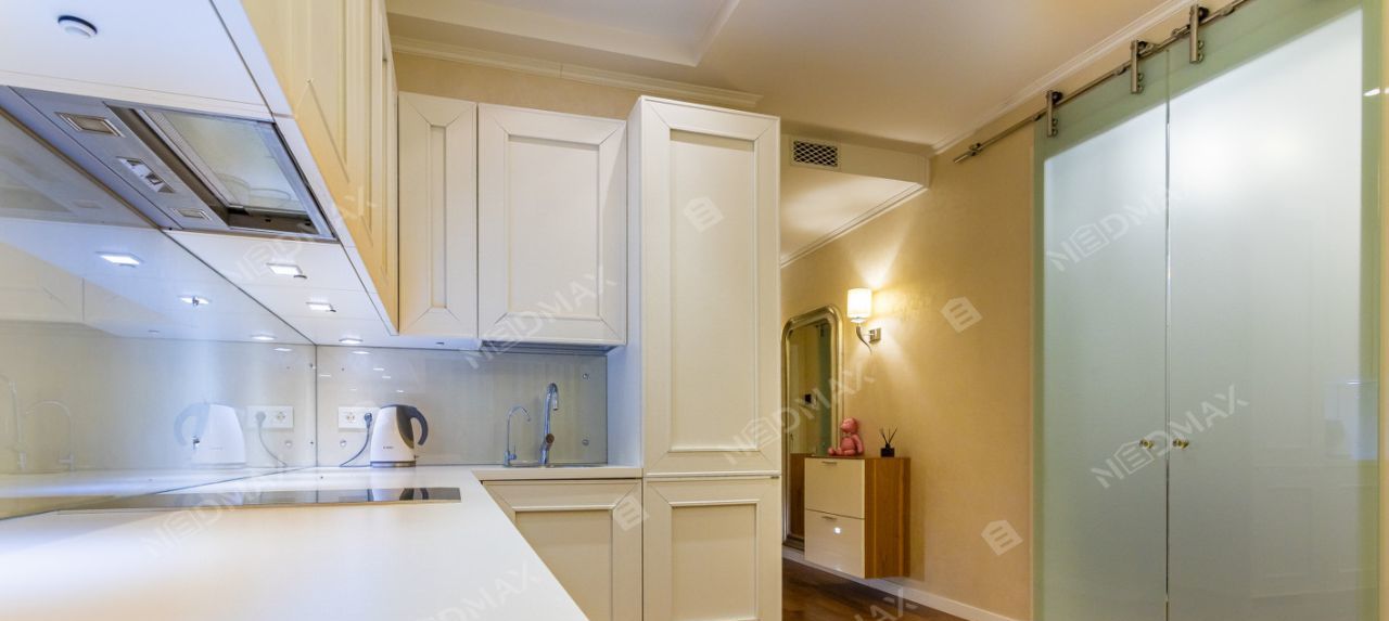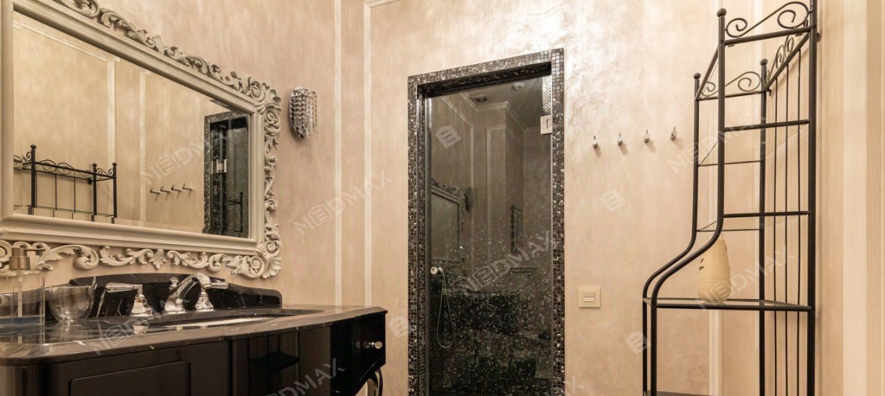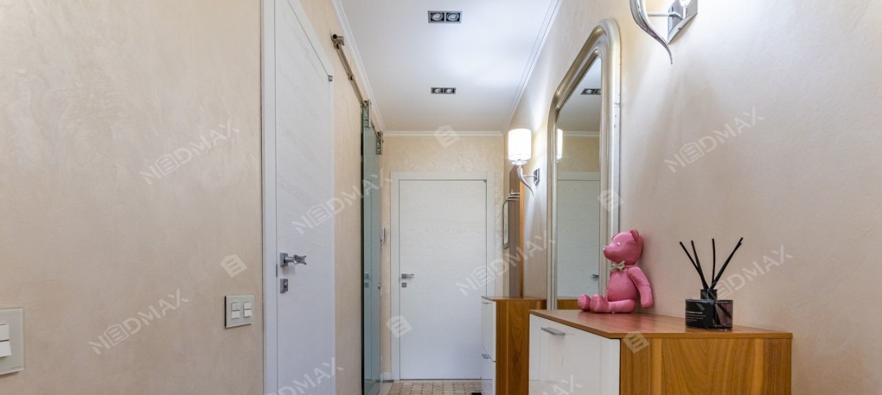 В квартире выполнен качественный евроремонт с использованием дорогих отделочных материалов. Планировка - спальная комната, просторная оборудованная кухня (посуд.машина), санузел с душевой, балкон. Много мест для хранения. Комфортабельная мебель, современная техника. Кондиционер, бойлер, вентилируемые фасады. Высокие потолки 3,1 м с окнами в пол.