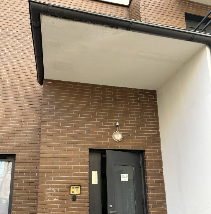 Монолитный дом 2013 года. Хороша придомовая территория, есть домовой чат, ухоженная парадная. Дом Юит, отличное качество квартир. Нет пандусов, парадная вровень с землей. Несколько лифтов.