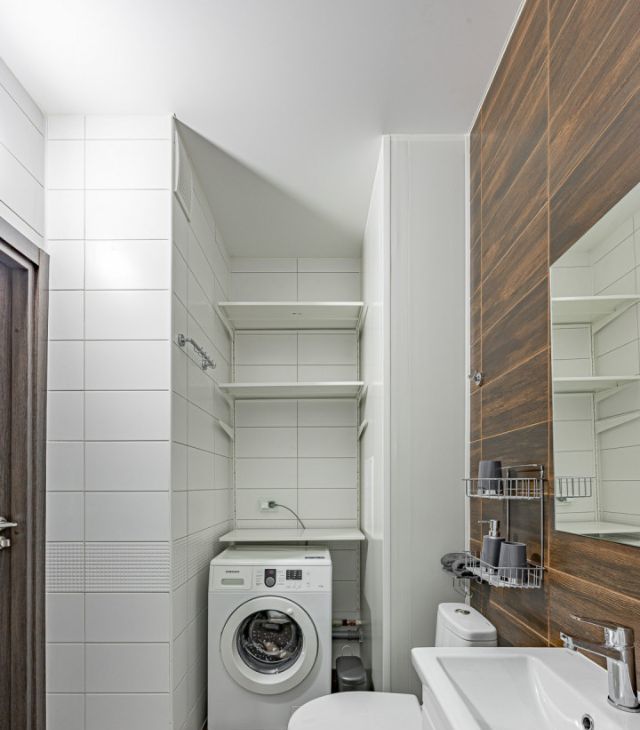 В ванной теплые полы.