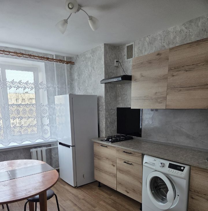 В квартире сделан косметический ремонт, предусмотрена вся необходимая мебель как в комнате, так и на кухне. Для комфортного проживания есть холодильник, стиральная машина и телевизор.