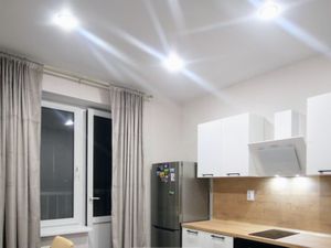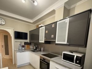 ОСОБЕННОСТИ: квартира в стиле модерн, панорамные окна балкона, полы с подогревом в ванной, высокие потолки, вид во двор (тихо и без дорожной пыли), современный дом, просторная парадная с возможностью выхода из любой части дома.