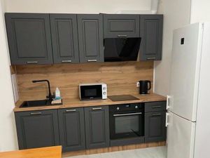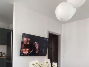 УДОБСТВА: вся необходимая новая мебель (в т.ч. от американского дизайнера Ch. Eames), рабочий стол и кресло; дорогая, качественная техника Bosh и LG: встроенный духовой шкаф, варочная панель (с авто-отключением при выкипании и по таймеру), встроенный холодильник, стиральная машинка (с обработкой паром), микроволновка, мощная и тихая вытяжка, чайник, телевизор с диагональю 126 см. и сочным, реалистичным изображением, Wi-Fi, цифровое ТВ.