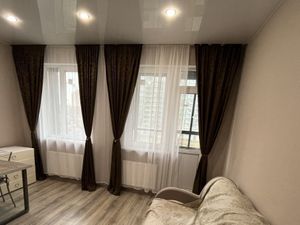Квартира в хорошем состоянии, сделан ремонт в комнате, поставлены стеклопакеты, просторная комната. Плита электрическая. Есть микроволновка. Есть 2 телевизора, кабельное подключение. В комнате 2х местная тахта с ящиком под белье. На кухне диван книжка.